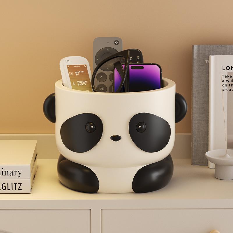 インテリア雑貨 パンダ 置物 多機能 収納 ブックスタンド ペン立て 鍵置き 小物入れ 玄関 リビング デスク テレビ台 飾り棚 樹脂製 かわいい おしゃれ 縁起物