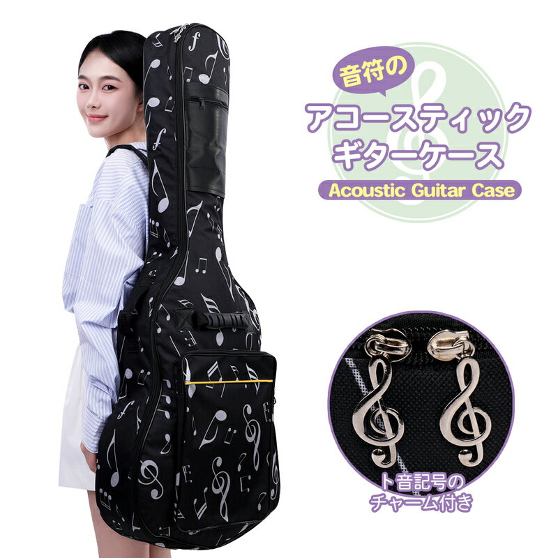 アコースティックギターケース 音符柄 ギター ケース ソフトケース ギグバッグ リュック ギグケース クッション付き 軽量 キャリーケース キャリーバッグ 楽譜収納可 ギターバッグ ギター収納ケース ギターアクセサリー 練習用ギターケース チャーム付き 送料無料