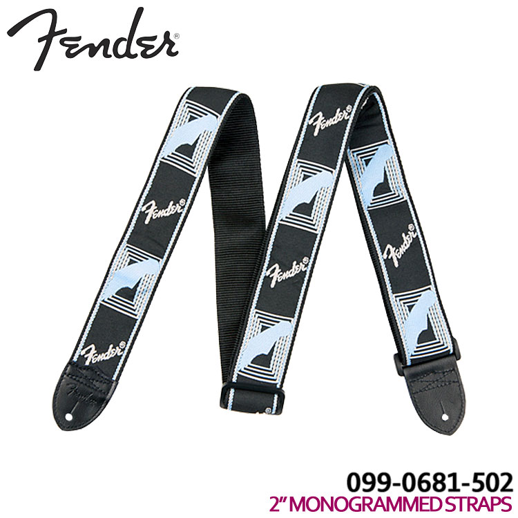 |  FENDER≪フェンダー≫ 2”MONOGRAMMED STRAPSBlack/LightGrey/Blue定番ストラップ