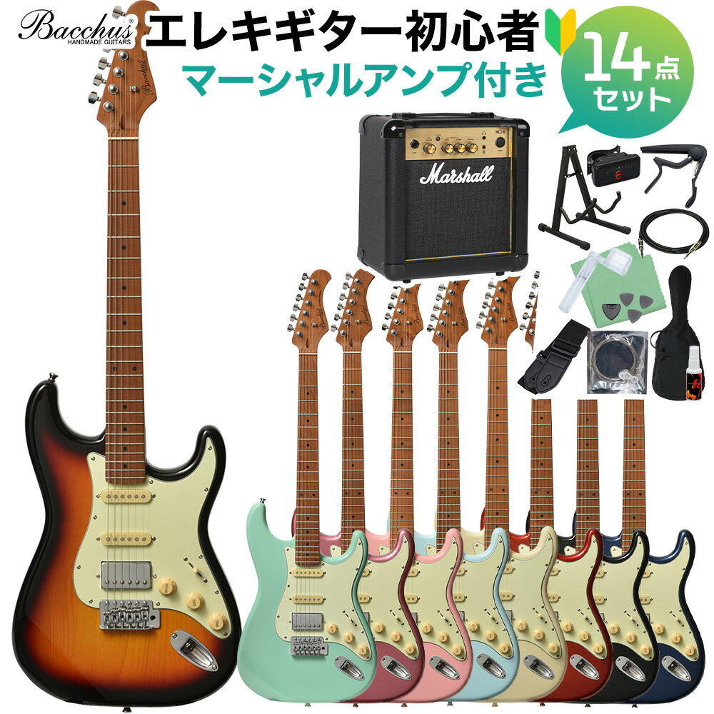 Bacchus BST-2-RSM/M エレキギター初心者14点セット【マーシャルアンプ付き】 ストラトタイプ ローステッドメイプルネック バッカス 【初心者セット】