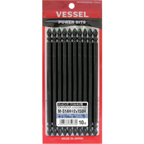 ドライバービット トーションタイプ VESSEL トーションビット サキスボビット ハイパワー刃先 MS14H +2×82mm [MS14H-2-82H] 10黄セット