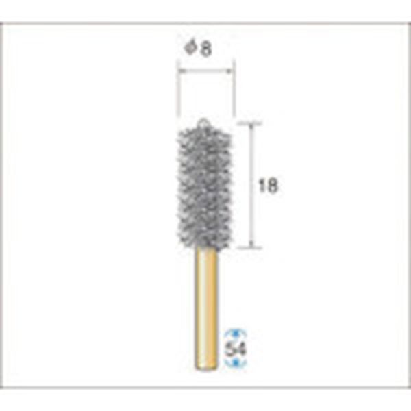 ・円筒内面、曲面仕上げなどや様々な加工に応用できるブラシです。・円筒内面、ネジ穴内面、パイプ内径等の通常のブラシでは対応できない部分仕上げ加工が可能です。・円筒内面、ねじ穴、パイプ内面、交差穴のバリ取りに最適。・金属、非鉄金属、プラスチック、ゴム等、各種材質への加工ができます。・線径(mm):0.15・毛材:ステンレス・外径(mm):8・ブラシ部長さ(mm):18・軸径(mm):3・適合内径(mm):8・全長(mm):54・最高使用回転数(rpm):3000・入数:1本・安全のため、保護メガネなど、保護具を必ず着用してください。・最高使用回転速度以下で使用してください。・ご使用に際しては、必ず回転調整付きの精密電動工具をご使用ください。エアーツールは使用不可です。・回転方向は、必ず正転(右回転)にてご使用ください。・作業開始に際しては、ツールを加工する穴や内面に挿入してから電動工具を始動してください。・生産国 日本・JANコード 4560264462083・質量 5g・コード:476-9767 ・品目:5163451634楽天 JP店