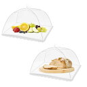 【送料無料】Selinear 食卓テーブルカバー 2本入り 折り畳み式 軽量 耐久性 通気性 洗える 虫よけ 埃よけ 食卓蚊帳 蝿帳 ひも付き 食卓傘 傘型 サマー デザート ご飯 ピクニック キッチン用 (ホワイト、32cm*32cm)