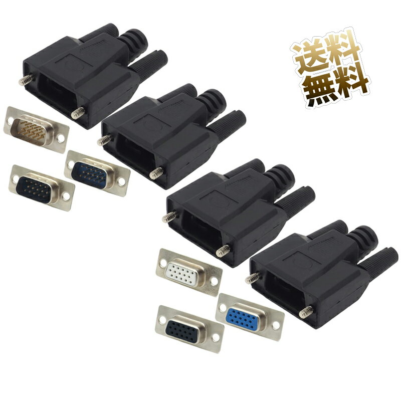 自作用コネクタ D-SUB 15ピン VGAコネクタ DB15 DB-15 オス端子 メス端子 自作 コネクタ 端子 ハウジング ケーブル穴径 約5mm ブラック メス2点 or オス2点