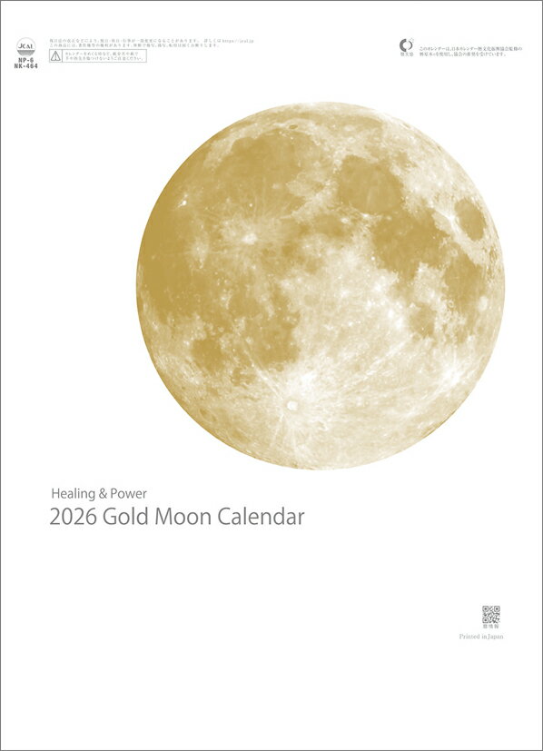 カレンダー 2026年 壁掛け ゴールドムーン NK464 2026年版 カレンダー 壁掛け 月 満月 満ち欠け 月表 黄金の月 イラスト 絵入り文字 コンパクト デザイン スケジュール メモ欄 前後月表示 A/4切 257833