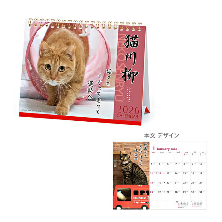 猫川柳 2026Calendar 壁掛け&卓上カレンダー2026年 週めくり スケジュール ねこ APJ 動物写真 書き込み インテリア 令和8年暦 メール便可 シネマコレクション
