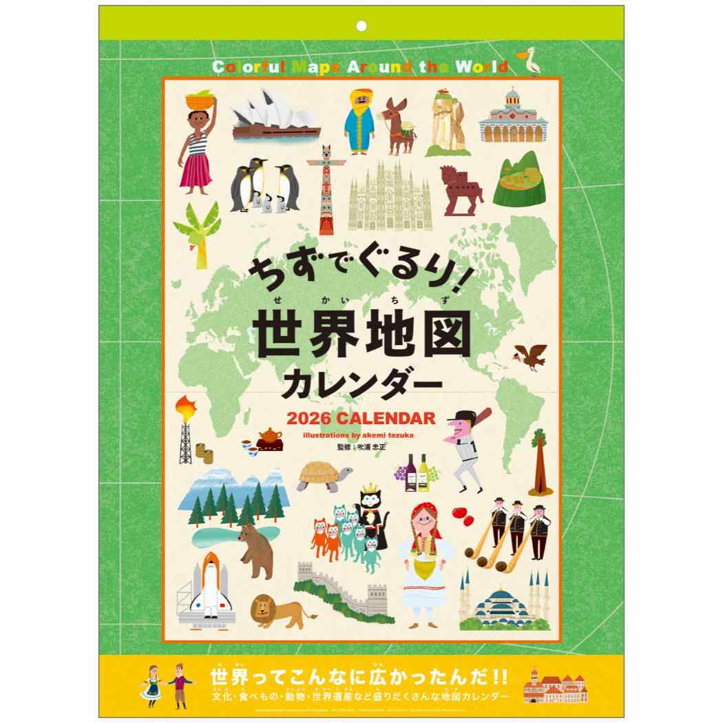 世界地図カレンダー てづかあけみ 2026Calendar 壁掛けカレンダー2026年 スケジュール APJ 教養 イラスト 書き込み インテリア 令和8年暦 シネマコレクション
