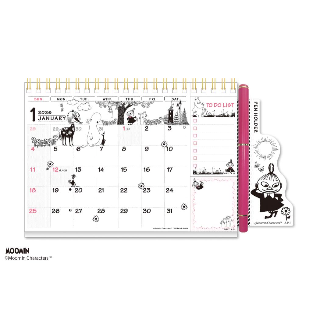 ムーミン ひょっこりスケジュール 2026Calendar 卓上カレンダー2026年 ペンホルダー&ふせん付き スケジュール 北欧 APJ イラスト 書き込み キャラクター 令和8年暦 メール便可 シネマコレクション