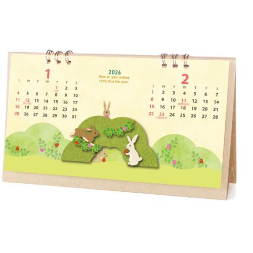 卓上カレンダー2026年 2026Calendar 芝生卓上 APJ アニマル ナチュラル インテリア 令和8年暦 メール便可