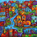 最初の商品画像がポスターの全体図です.2 番めの商品画像として中央部分の拡大図をのせています. 【GPT5/4o による解説】 (正確でない場合がありますので,ご注意ください.) この絵は,強い黒い線で縁どられた家々と曲がりくねる道が,画面いっぱいに踊るように広がっています. 赤や橙,青や紫など鮮やかな色が隣り合い,陰影よりも色の対比で奥行きを作っています. 家は少し傾き,窓は記号のように簡略化され,現実より自由な形です. 視線は中央の青い道に導かれ,町を散歩している気分になります. 写実的な風景画と比べますと,細かな質感や遠近は重視せず,音楽のリズムのような線と色が主役になっています. 光の変化を追う印象派より平面的で,形を分解するキュビスムより丸みがあり,民芸や絵本の絵に近い親しみやすさがあります. 楽しく明るい色調が,日常の町並みを祝祭の舞台に変えているように感じられます. 【購入方法・サイズなどについて】 サイズはつぎのうちのいずれかを上記の商品リストで選択してください.いずれも正方形です.・500 mm × 500 mm. ・400 mm × 400 mm. ・300 mm × 300 mm. ・250 mm × 250 mm (紙は 300 mm × 300 mm.余白つき). ・200 mm × 200 mm. オンデマンドで印刷します (受注生産です) が,基本的に 1 週間以内に発送します. 300 mm と 250 mm のものは楽天,アマゾン,ニトリ,ハンズ,無印良品などで販売されている内寸 30 cm 角のフレームにちょうとおさまります. この商品にはフレームは付属せず販売もしていません. 【画像の制作方法】 制作者と AI (AI アート作成用のプログラム Stable Diffusion XL 1.0 (1024)) とからなるアートユニット カナ によるアートポスターです.そのプログラムに「Yasusi_Kanada」ということば (prompt) をあたえて創造させました. 負のプロンプトとして「Toyohara_Kunichika」を指定しています. AI アートでは通常 A6 サイズ相当くらい (縦横 500〜1000 ピクセルくらい) の荒い画像しかつくれないので,超解像という技術をつかって原画より解像度を 4〜8 倍に (こまかく) しています. ただし,上の商品画像の解像度は原画と同程度なのでご注意ください. これらのポスターは通常の AI アートとはちがう独自の方法を使って作っています. AI アートは AI にプロンプト (または呪文) とよばれる英語の記述をあたえて作画した画像ですが, Stable Diffusion,DALL・E 2,Midjourney などの AI プログラムによって 2022 年に爆発的に普及しました. AI アートで望む画像を作るために通常は比較的細かい指示を与えます. しかしデイシンではおもに 1〜4 語程度の短いことばや造語を Stable Diffusion XL 1.0 (1024) を使用している OpenArt,NightCafe などのウェブサイトで使用して,そのプログラムがもつ知識をいかして自由に (ジェネラティブに,創発的に) 画像をつくらせています. コントラストの調整等はしていますが,描きなおさせたり加筆したりするようなことはしていません. こうやって作られる「意図しない」画像も「AI アート」とは呼ばれるものの,かならずしもアートとはいえないと考えています. しかし,思いもよらない画像や特定の画家風の部分がありながらその作品とはちがうスタイルの画像,模様やステンドグラスに埋め込まれた猫など,様々な興味ぶかい画像がつくれます. 【キーワード】 AIアート, AI画家, 画像生成AI, 人工知能アート, コンピュータアート, コンピュータ・アート, デジタルアート, メディアアート, Stable Diffusion, ジェネラティブアート, ジェネレーティブアート, 創発的, 生成的, アート・ジェネレータ, インテリア, ウォールアート, アートポスター, アートプリント, オリジナルポスター 【著作権に関する注記】 この画像は ISAP 手法にもとづいて AI が生成したものです.特定の現存作家または既存作品の模倣・再現を意図するものではありませんが,お気づきの点がありましたら info@dasyn.com にご連絡ください.AI を使って造った気軽に楽しめるアートポスター AI とともに描いた様々な絵でお部屋をかざってみませんか? AI アートでさまざまな絵画を創造しました.人だけでは描くのが難しいオリジナル作品をお求めやすい価格で提供します.壁にならべて貼ったり,気分にあわせて貼りかえてみることもできます.