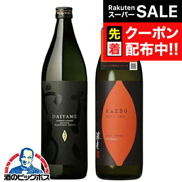 パッケージや商品リニューアルによる新旧指定不可。 ラベルのデザインが掲載の画像と異なる場合がございます。 画像違いの交換はお受けいたしかねます。 ■北海道・九州・四国の配送は1個口毎にプラス400円かかります。 ■離島・沖縄への配送には1個口毎に別途送料がかかります。 【商品詳細】 鹿児島県の濱田酒造の人気芋焼酎2種の飲み比べセット。 [芋焼酎 KAIDO 焼き芋] 容量:900ml アルコール:25度 原材料名:さつまいも(鹿児島県産)、米麹(国産米) 麹:白麹 味わい:スイーツのような甘いさつまいも「シルクスイート」を焼き芋にして仕込んだ本格芋焼酎。お湯割りがおすすめ! [芋焼酎 だいやめ] 容量:900ml アルコール:25度 原材料名:さつまいも(鹿児島県産)、米麹(国産米) 麹:黒麹 味わい:甘くまろやかな味わいとキレの良い後味が特長です。特に強炭酸水で割って頂きますと、より一層華やかな香りをお楽しみ頂けます。