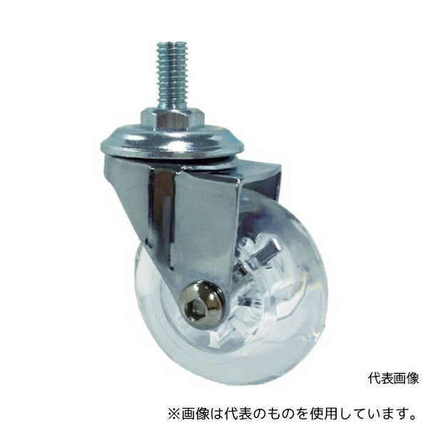 SAMSONG CASTER デザインクリアキャスター「Emma」 ネジ 自在ストッパー付 6 1個●クリアービジュアルで外観性に優れたデザインキャスターです。●小物、イス、木製クラフト、玩具のホイール用●許容荷重(daN):47●許容荷重(kgf):48●車輪径D(mm):60●車輪幅(mm):23●取付高H(mm):81.5●軸長L(mm):15●ねじT:M8●ねじピッチ(mm):1.25●許容荷重(N):480●色:透明●タイプ:自在式(ストッパー付)●ねじ込み式●自在式(ストッパー付)●材質/仕上:●▼金具:スチール●▼金具表面処理:クロム●▼車輪:ポリウレタン+ポリカーボネート●原産国:中国●コード番号:828-0245