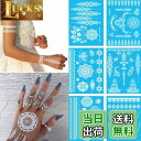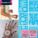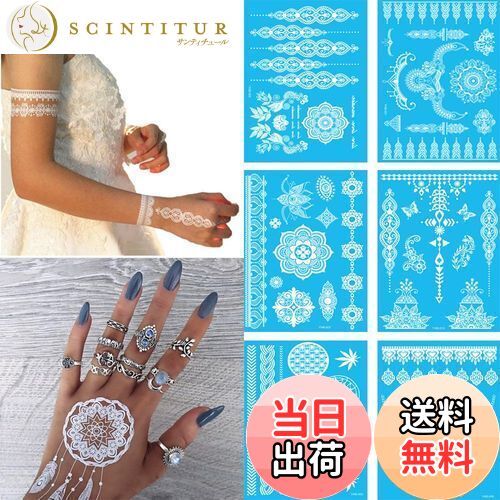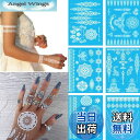 【送料無料】Yesallwas タトゥーシール 白ヘナ 花 結婚式 大判 6枚セット 白 レス 花柄 メタル 星 羽 海 花 輝く 刺青シール ボディーシール レディース 腕、足、体、背中に Tatoo (D)