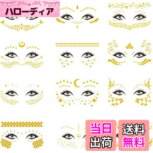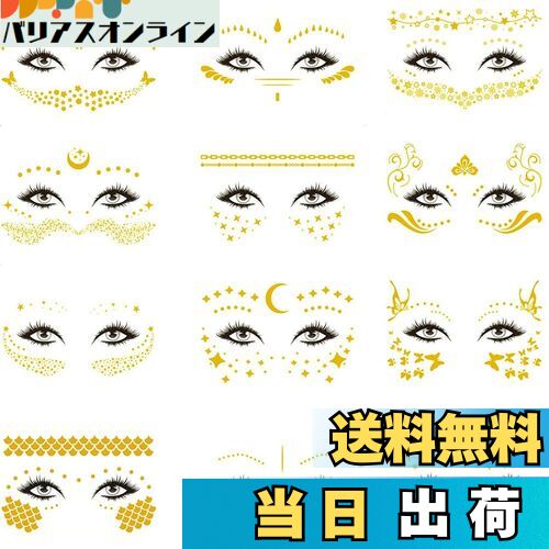 【送料無料】12枚人気タトゥーシール ゴールド顔ペイント キラキラかわいい、VIWIEU 女性 光るフェイスシール 星 蝶 花 水転写タトゥー閃光 フラッシュ ボディシール ハロウィンパーティージュエリーボディメイク クリスマス 仮装小道具 大人と子供が用 結婚式、誕生日に適用