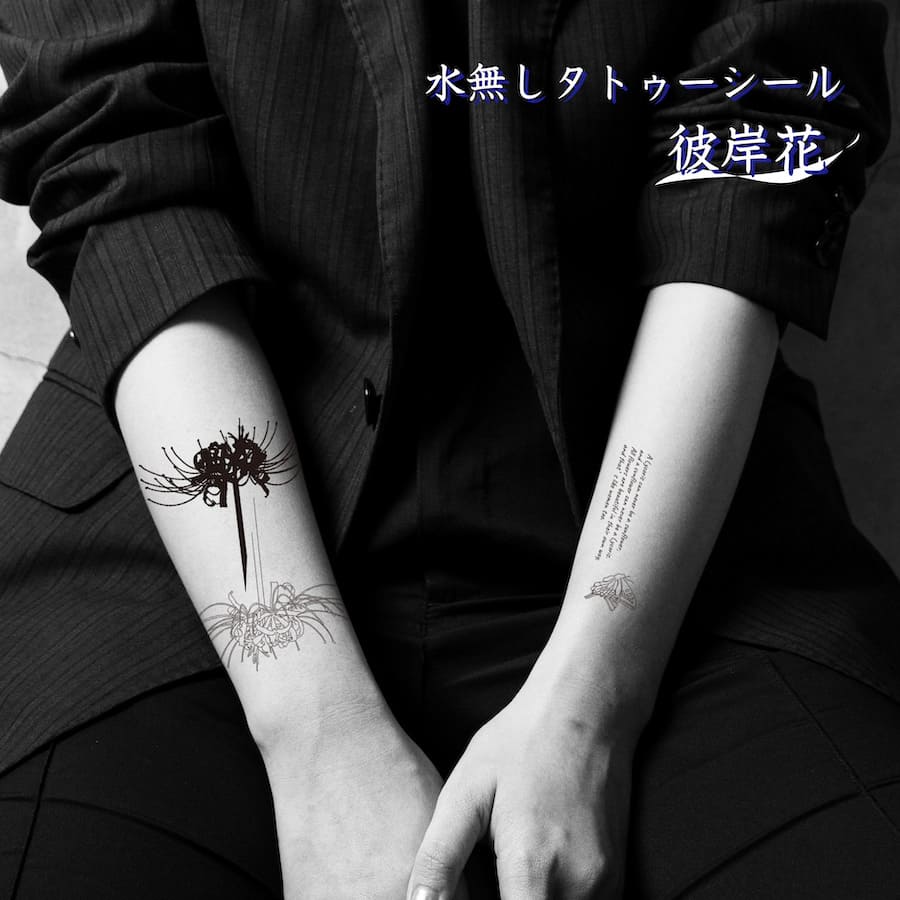 水なしで貼れる 2枚入 タトゥーシール 彼岸花 ボディシール fake tattoo 乾式 ワンポイント ボディアート メンズ かわいい おしゃれ 背中 首 フェス イベント 野外 パーティー カウントダウン 防水 リアル シンプル モノクロ シャイニー 韓国 【メール便送料無料】
