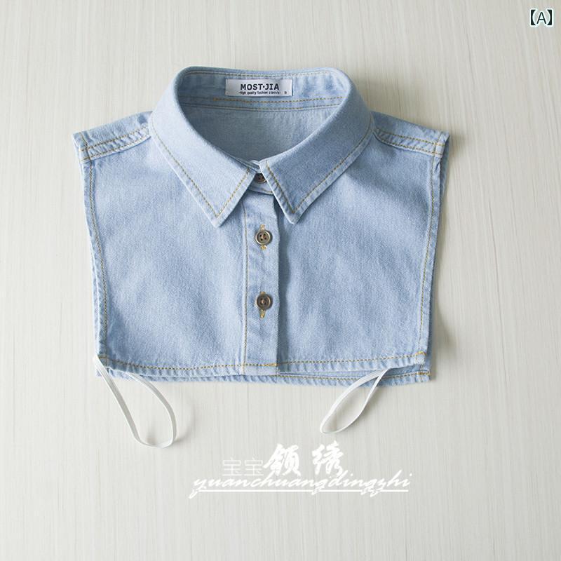 付け襟 子供 キッズ 女の子 男の子 春秋 ウォッシュドデニム フェイクカラー 小物 アクセサリー 韓国 ニット セーター シンプル レトロ おしゃれ 青