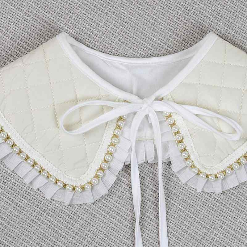 付け襟 レディース キッズ 大人用 子供用 白色 綿 コットン 扇形 花柄 ショール レイヤードスタイル 重ね着 エレガント フェミニン 秋冬 ファッション小物 おしゃれ かわいい
