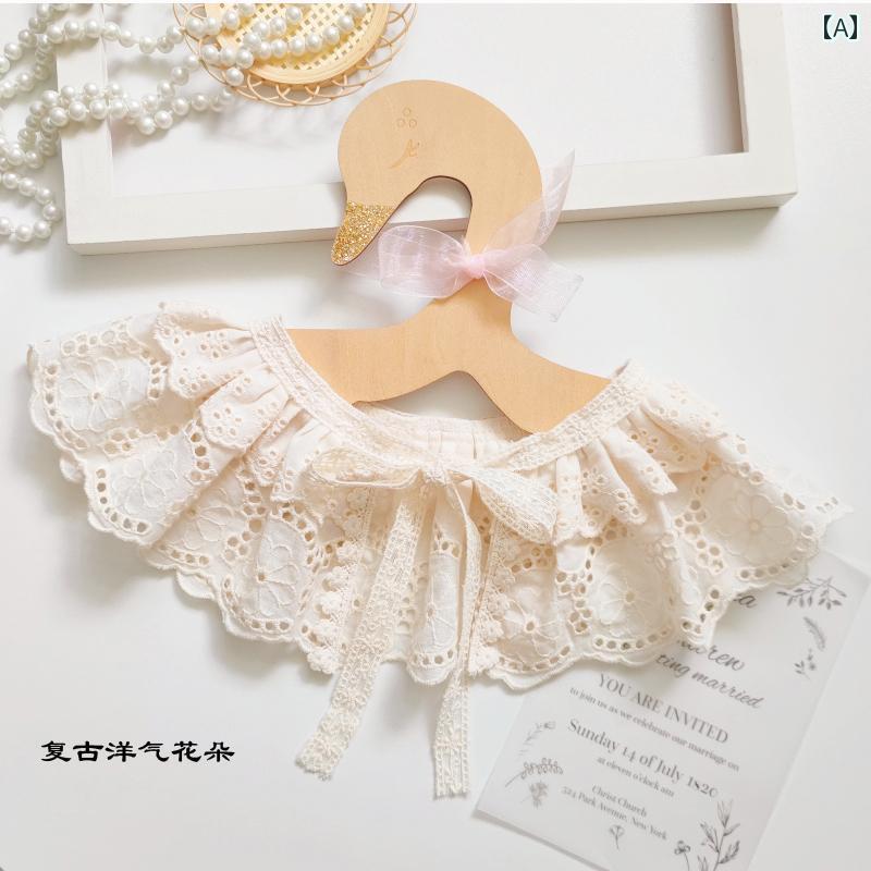 キッズ つけ襟 小物 レース 付け襟 子供ドレス ワンピース用 赤ちゃん ベビー 子供 女の子 ガールズ レイヤード 丸襟 肩かけ 刺繍 レース フォーマル 発表会 結婚式 子供 男女兼用 フォーマル 可愛い アクセサリー 透けレース 通学 ホワイト