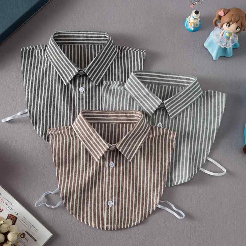 つけ襟 キッズ 子供 装飾 春秋 ストライプ 幼児 ジュニア シャツ サイドストラップ フェイク ポインテッドカラー おしゃれ シンプル グレー 茶 緑