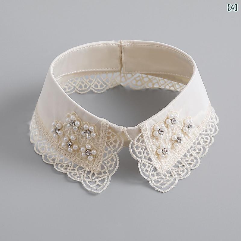 付け襟 レディース 黒 白 モノトーン 無地 レース 刺繍 幅広 ショール風 クラシック レトロ ポリエステル シャツ ブラウス 重ね着風 万能 カジュアル フォーマル ファッション小物