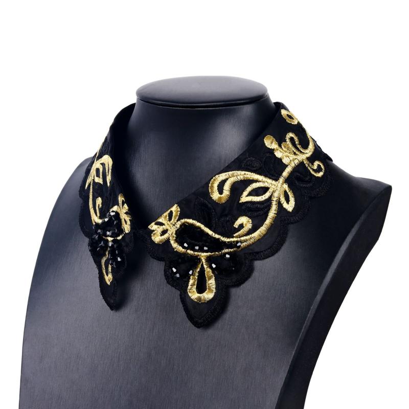 付け襟 刺繡 金糸 ラインストーン レトロ 高級感 立ち襟 スタンドカラー フェイクカラー ネックアクセサリー ブラック ポリエステル 花柄 春夏 ファッション小物 万能 フォーマル エレガント 普段使い