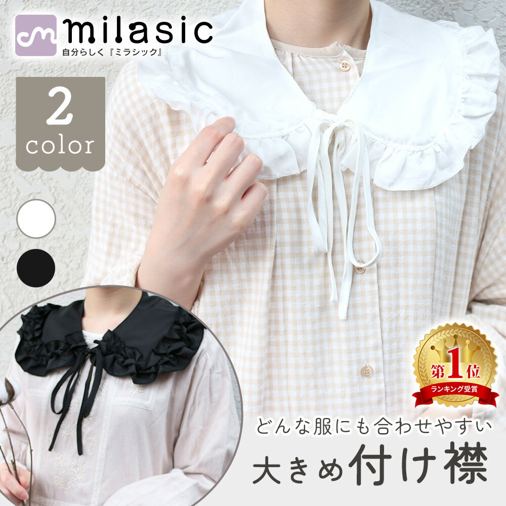 【MILASIC公式】フリル つけ襟 フリル付け襟 大きいサイズ かわいい 付け襟 シャツライク インナー 重ね着 風 シンプル レディース 襟 後付け サイズ調節 ズレない 上品 女性 秋冬 春夏 シャツ風 ブラウス ファッション小物 コーディネート カジュアル