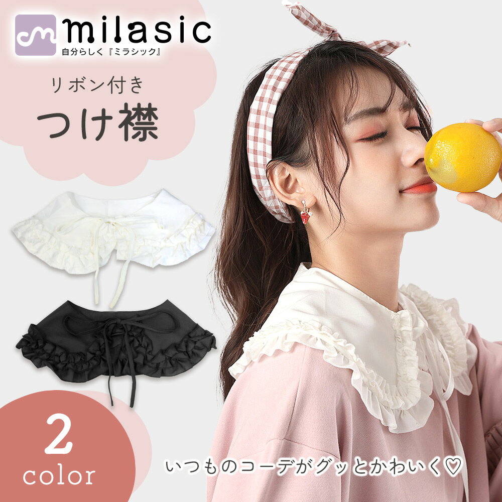 【MILASIC公式】付け襟 かわいい フリル つけ襟 ファッション小物 重ね着 重ね着風 フリル付け襟 シャツライク インナー シンプル レディース 秋冬 春夏 シャツ風 ブラウス ファッション小物 無地 コーディネート カジュアル つけえり 大人 襟 後付け サイズ調節 ズレない