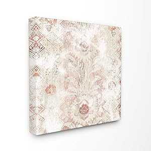 Stupell Industries Flower Pattern Textile Red Silver Canvas Wall Art, 17 x 17, Design by Artist June Erica Vess