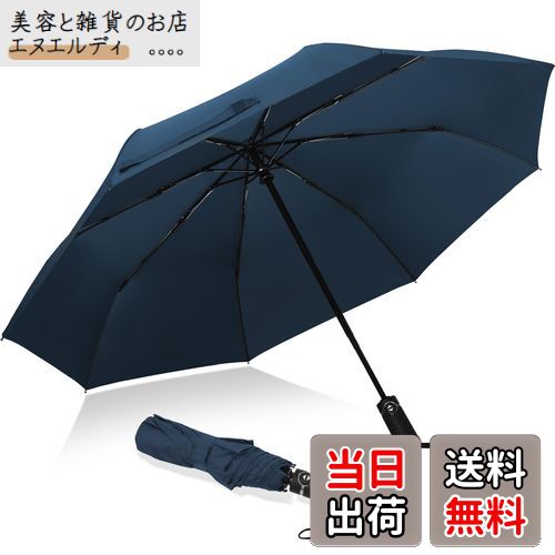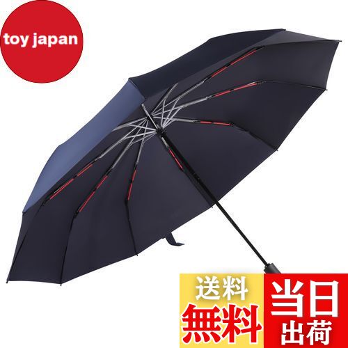 【送料無料】【新登場・特大10本三段骨】Vialifer 折りたたみ傘 ワンタッチ 自動開閉260T超撥水 高強度赤色グラスファイバー傘骨 大きい 折り畳み傘 メンズ傘 耐風撥水 梅雨対策 台風対応 収納ポーチ付き メンズ レディース (ネイビー)