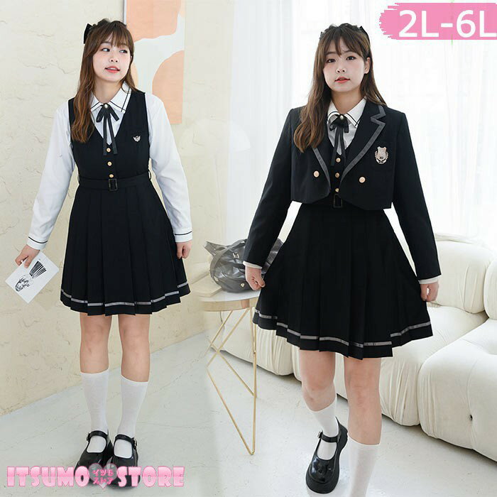 なんちゃって制服 ジャンパースカート 女子 入学式 卒業式 学生服 ワンピース シャツ ブラウス プリーツスカート ハイウエスト 大きいサイズ レディース 長袖 半袖 リボン サロペット ロリータ ブラック 黒 ジャケット追加可能 発表会 通学 可愛い コスプレ ma005m3m3m3
