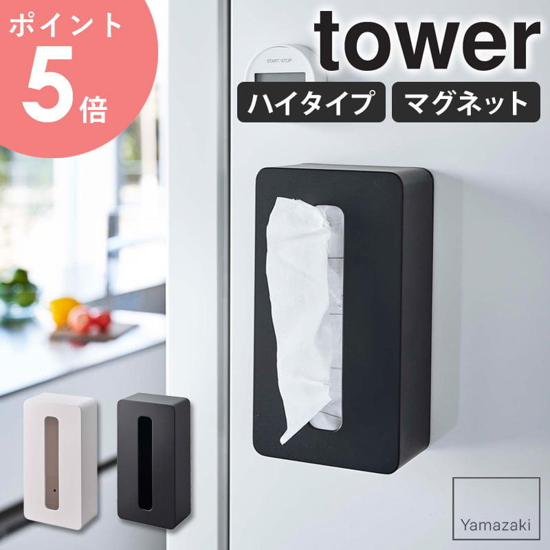 ティッシュケース おしゃれ 公式 新商品 新作 壁面収納雑貨 キッチン収納 ホワイト 白 ブラック 黒 レジ袋 キッチンペーパー 収納ケース yamazaki ヤマザキ タワーシリーズ towerシリーズ 詰め替え簡単 ( tower 前から開くマグネットボックスホルダー タワー 山崎実業 )