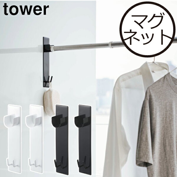 【365日出荷】 [ マグネットバスルーム物干し竿ホルダー2個組 タワー ] 部屋干し tower ホワイト ブラック 4915 4916 便利 洗濯収納 壁面収納 室内干し フック 生活雑貨 ランドリー 浴室 物干し 浴室乾燥 シンプル おしゃれ 一人暮らし 山崎実業 yamazaki