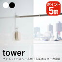 【クーポン対象外】 マグネットバスルーム物干し竿ホルダー2個組 タワー tower 山崎実業【物干しフック 室内干し 浴室物干し 洗濯物 人気 ナチュラル おしゃれ yamazaki】
