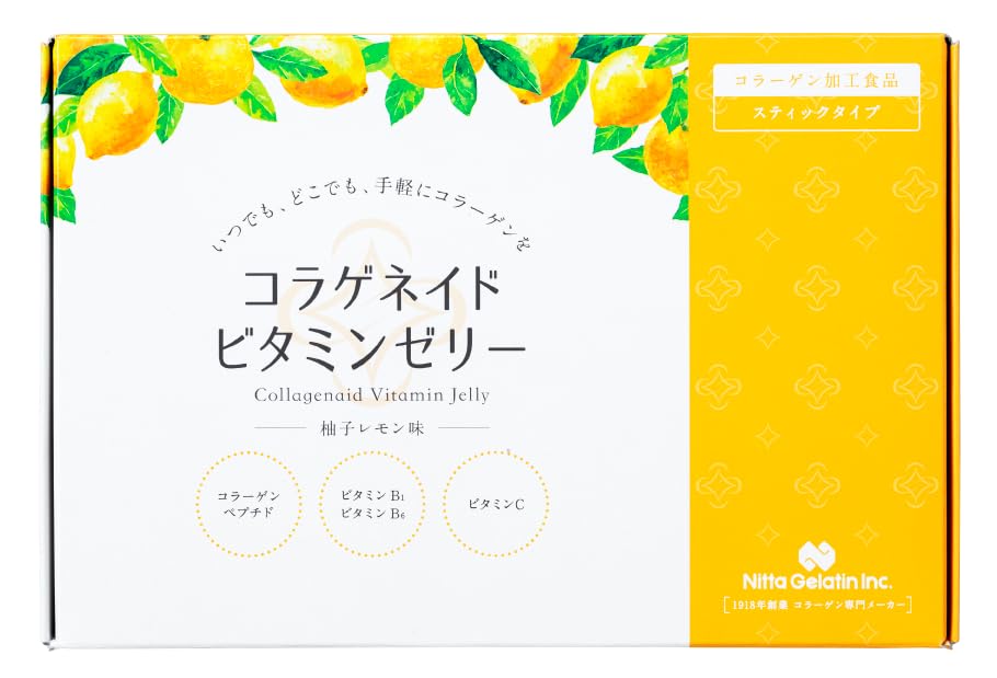 【送料無料】新田ゼラチン コラゲネイド ビタミンゼリー 柚子レモン味 (20g×15本) ぷるんと美味しくコラーゲンとビタミンを補給 (1本当たり コラーゲンペプチド 2,500mg配合 / ビタミンB1 B6 C入り/葉酸) コラーゲン習慣