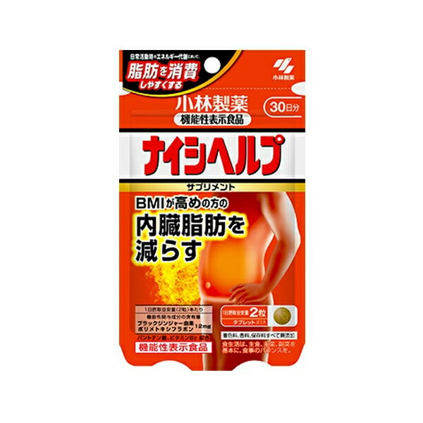 保健機能食品表示 届出表示:本品には、ブラックジンジャー由来ポリメトキシフラボンが含まれます。ブラックジンジャー由来ポリメトキシフラボンは、BMIが高め(BMI24以上30未満)の方の腹部の脂肪(内臓脂肪及び皮下脂肪)を減らす機能があることが報告されています。また、日常活動時のエネルギー代謝において、脂肪を消費しやすくする機能があることが報告されています。 1日あたりの摂取目安量 1日2粒 召し上がり方 ・1日2粒を目安に、かまずに水またはお湯とともにお召し上がりください。 原材料 L-カルニチンL-酒石酸塩(国内製造)、麦芽糖、デンプン、ブラックジンジャーエキス、デキストリン/結晶セルロース、シクロデキストリン、ヒドロキシプロピルセルロース、パントテン酸カルシウム、ビタミンB2、微粒酸化ケイ素、ステアリン酸カルシウム、シェラック 栄養成分 2粒あたり エネルギー:2.5kcal、たんぱく質:0.079g、脂質:0~0.028g、炭水化物:0.51g、食塩相当量:0~0.00099g、パントテン酸:30.0mg、ビタミンB2:12.0mg 機能性関与成分:ブラックジンジャー由来ポリメトキシフラボン 12mg、L-カルニチン 75mg 規格概要 ・内容量:60粒(1粒重量320mg) 保存方法 ・直射日光を避け、湿気の少ない涼しい所に保存してください 注意事項 ・1日の摂取目安量を守ってください。 ・乳幼児・小児の手の届かない所に置いてください。 ・食物アレルギーの方は原材料名をご確認の上、お召し上がりください。 ・ビタミンB2の影響で尿が黄色くなることがあります。 ・原材料の特性により色等が変化することがありますが、品質に問題はありません。 ・本品は、肥満症などを改善する医薬品のナイシトールシリーズではありません。 ・本品は、疾病の診断、治療、予防を目的としたものではありません。 ・本品は、疾病に罹患している者、未成年者、妊産婦(妊娠を計画している者を含む。)及び授乳婦を対象に開発された食品ではありません。 ・疾病に罹患している場合は医師に、医薬品を服用している場合は医師、薬剤師に相談してください。 ・体調に異変を感じた際は、速やかに摂取を中止し、医師に相談してください。 ・本品は、事業者の責任において特定の保健の目的が期待できる旨を表示するものとして、消費者庁長官に届出されたものです。ただし、特定保健用食品と異なり、消費者庁長官による個別審査を受けたものではありません。 原産国 日本 商品区分 健康食品 製造元 小林製薬 受付時間9:00-17:00(土・日・祝日を除く) 健康食品・サプリメント:0120-5884-02 検索用文言 【ゆうパケット配送対象】[小林製薬] ナイシヘルプ 60粒入(ポスト投函 追跡ありメール便) 広告文責 株式会社ケンコーエクスプレス TEL:03-6411-5513BMIが高め(BMI24以上30未満)の方の腹部の脂肪(内臓脂肪及び皮下脂肪)を減らす ●BMIが高め(BMI24以上30未満)の方の腹部の脂肪(内臓脂肪及び皮下脂肪)を減らす ●着色料、香料、保存料すべて無添加 ●食生活は、主食、主菜、副菜を基本に、食事のバランスを