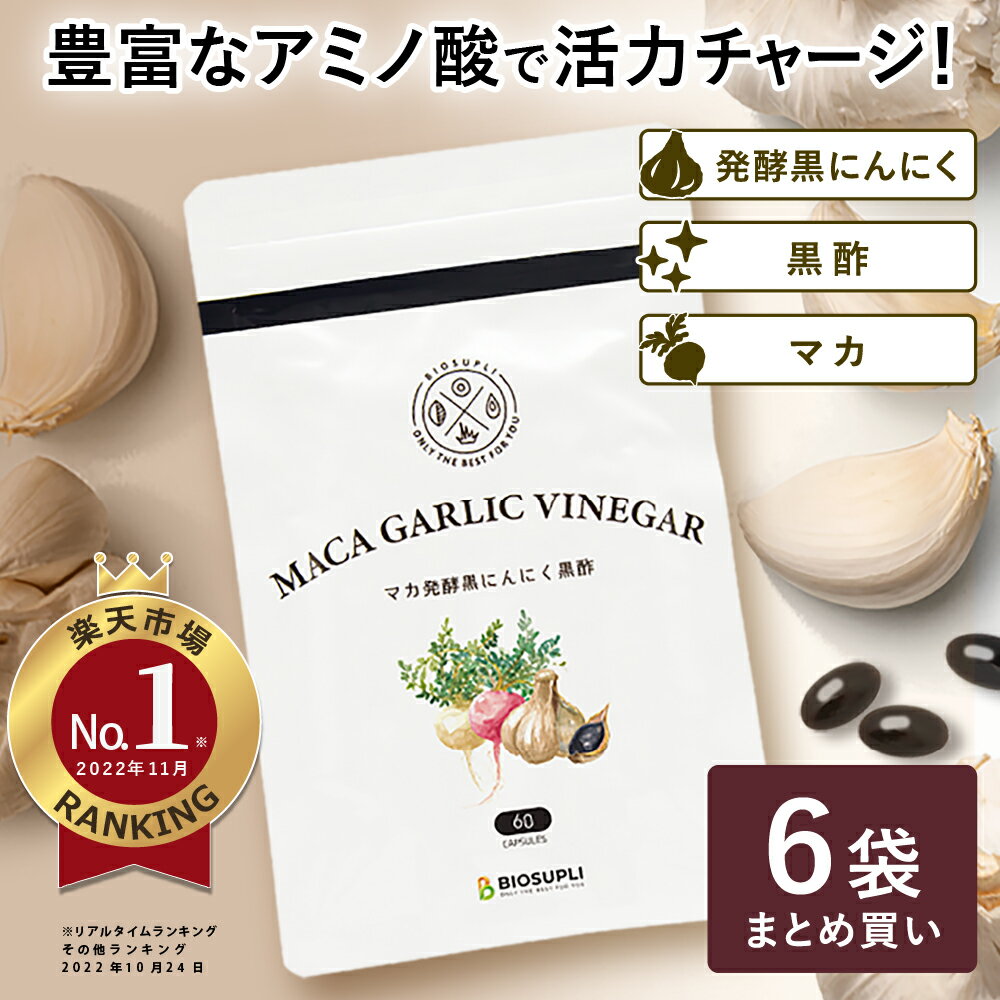 《6袋まとめ買い15%OFF 送料無料》マカ発酵黒にんにく黒酢 60粒×6袋 | 発酵 活力 サプリメント 青森産 パウチ アミノ酸 サプリ 黒酢にんにく 福地ホワイト六片 健康食品 男性 女性 ニンニク ポリフェノール アントシアニン 黒にんにくマカ 錠剤 国産 日本製