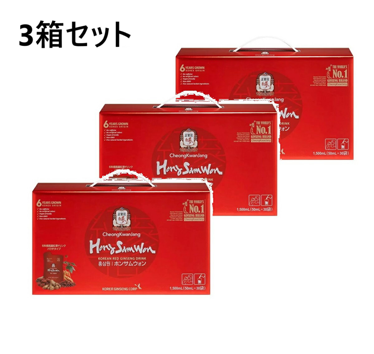 【3箱】ホンサムウォン 高麗人参ドリンク 50ml×30袋 パウチタイプ 正官庄 ジョンカンジャン 紅参 こうじんげん 紅蔘元 高麗人参 6年根 ドリンク 朝鮮人参 紅人参 紅参 エキス ショウガ シナモン ナツメ クコ ノンカフェイン 高麗人参エキス 韓国 美容 健康