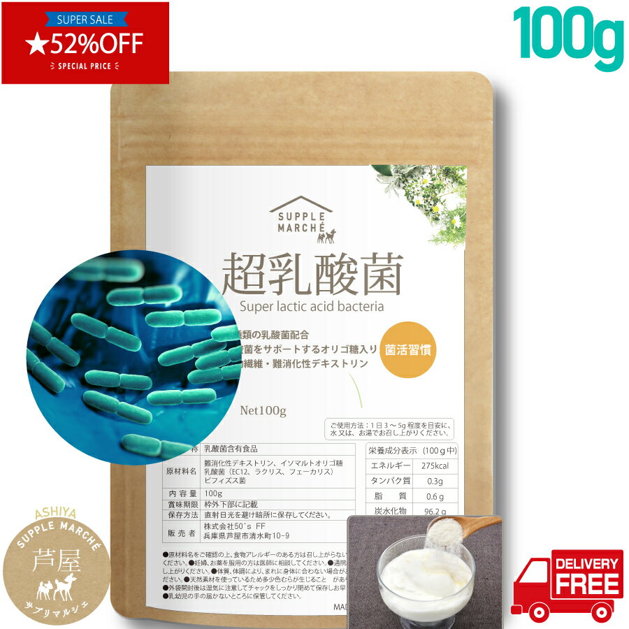 【BLACK FRIDAY期間限定 52%OFF お一人様5個まで】超乳酸菌 10兆個の乳酸菌 100g(1日1000億個で100日分) プレーンタイプ EC-12 ビフィズス菌 ラクリス菌 アシドフェルス菌 難消化性デキストリン オリゴ糖 植物性 動物性 プロバイオティクス 酪酸菌 善玉菌 腸活 菌活