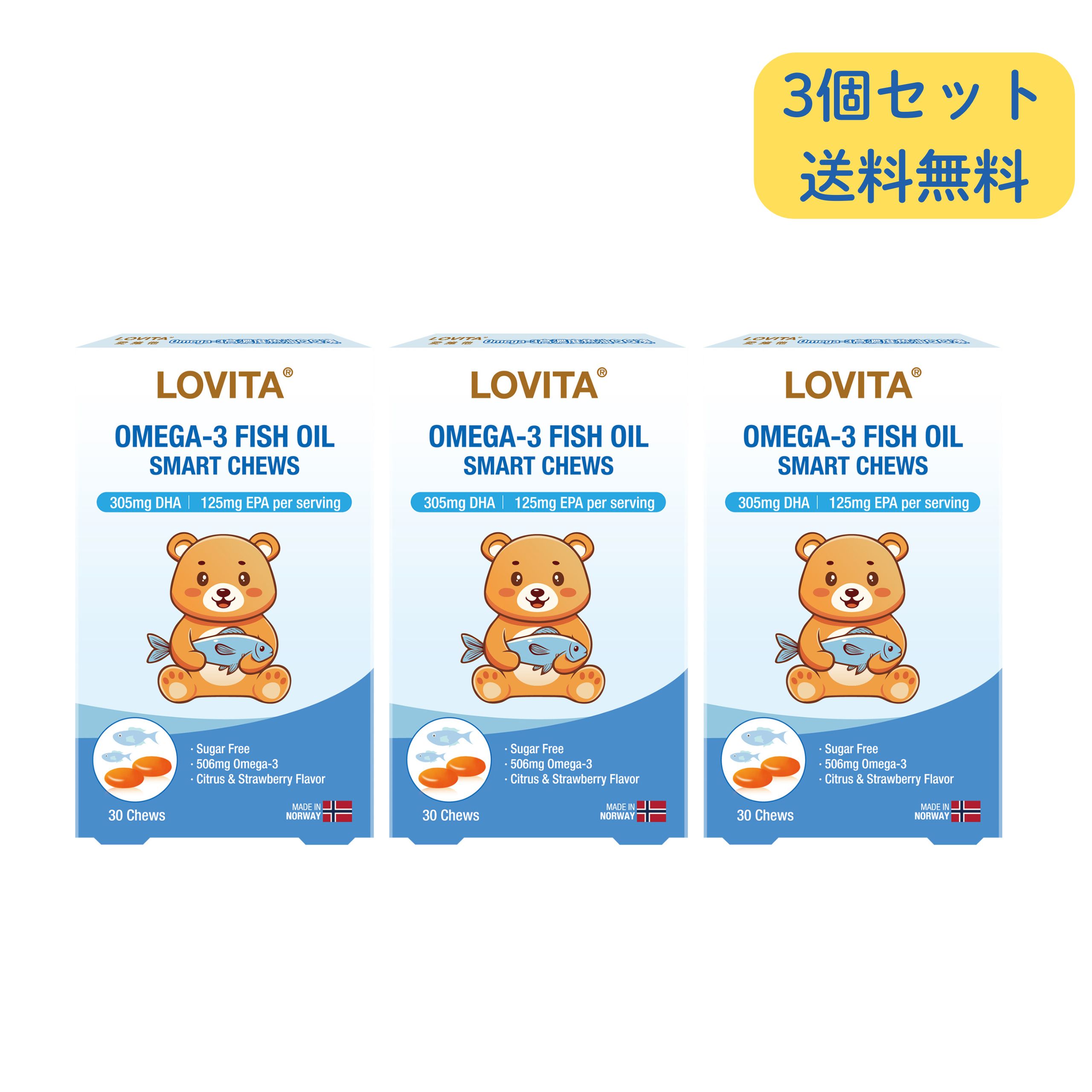 ↑トピックスをチェック↑ 【商品特徴】 ・【DHA305mg+EPA125mg】子供の脳の発達と集中力を科学的にサポート ・【ビタミンD配合】骨と免疫の健康維持に不可欠な栄養素をプラス ・【シュガーフリー・フルーツ味】毎日食べたくなるおいしさと健康を両立 ・【ノルウェー発・特許Concordix®】グミ型でおいしく続く ・魚臭ゼロ、子どもがよろこぶやさしい設計 ・子どもがよろこぶやさしい小粒設計(噛んで食べられるゼリータイプ) ・PTP個包装で湿気に強く、持ち運びにも便利(1粒ずつ清潔に取り出せます) 内容量 / 形状 / サイズ 内容量:30粒(48g) / グミチュー 【お召し上がり方】 1日1粒の目安、3歳以上のお子様、成人の方を対象としています。 誤飲防止のため、必ずよく噛んでください。 高温でやわらかくなることがありますが、品質に問題はありません。 冷蔵庫で冷やすと元のかたさに戻ります。 アレルギー体質の方、妊娠・授乳中、服薬中の方は、医師にご相談ください。 本品を過剰に摂取しても、疾病が治癒したり健康が一層増進するものではありません。 必ず1日の目安摂取量を守ってお召し上がりください。 【保存方法】 高温多湿な場所を避けて常温で保存してください。 【注意事項】 ・当店でご購入された商品は、原則として、「個人輸入」としての取り扱いになり、台湾からお客様のもとへ直送されます。 ・通関時に関税・輸入消費税が課税される可能性があります。 ・課税額はご注文時には確定しておらず、通関時に確定しますので、商品の受け取り時に着払いでお支払いください。詳細はこちらご確認下さい。 ・個人輸入される商品は、全てご注文者自身の「個人使用・個人消費」が前提となりますので、ご注文された商品を第三者へ譲渡・転売することは法律で禁止されております。 ・一部商品は国内の提携先倉庫から配送されます。 ・国内配送の商品は国内でのお買い物と同じく消費税が発生いたします。関税はかかりません。 *色がある場合、モニターの発色の具合によって実際のものと色が異なる場合がある。 1) 広告文責:Lovita Corporation TEL:886227893258 2) メーカー名: Lovita Corporation 3) 輸入者名:本商品は個人輸入商品のため、購入者の方が輸入者となります。 4) 製造国:ノルウェー 5) 商品区分:健康食品 6) 全成分:精製濃縮魚油、ゼラチン、中鎖脂肪酸油、サフラワー油/甘味料(キシリトール、ソルビトール)、酸味料、香料、酸化防止剤(ビタミンC)、パプリカ色素、 ビタミンD (一部にゼラチン・さばを含む) 7) 内容量:30粒(48g)
