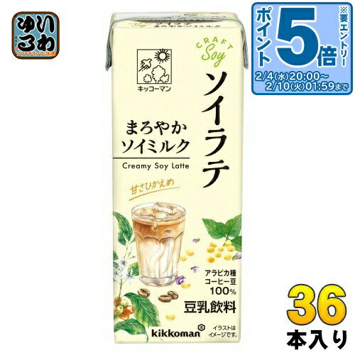 〔エントリーでポイント5倍!〕 キッコーマン クラフトソイ ソイラテ まろやかソイミルク 200ml 紙パック 36本 (18本入×2 まとめ買い) 豆乳飲料 豆乳 イソフラボン 甘さひかえめ コーヒー 珈琲