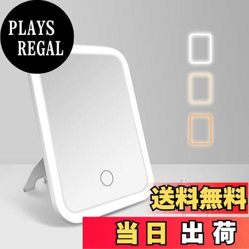 【送料無料】tekstap ライト付きミラー、3色モード 明るさ調節可能 鏡 ライト付き、持ち運びに便利 led ミラー 軽量、充電式 化粧 鏡 led、旅行/卓上/寝室に適したポータブル 女優 ミラー、女の子のプレゼント(四角)
