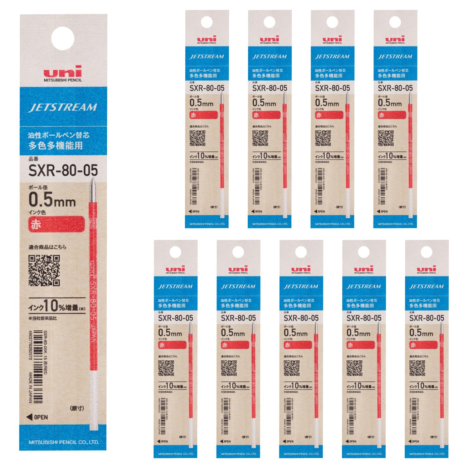 【送料無料】三菱鉛筆 ボールペン替芯 ジェットストリーム 多色多機能 10本 色:レッド