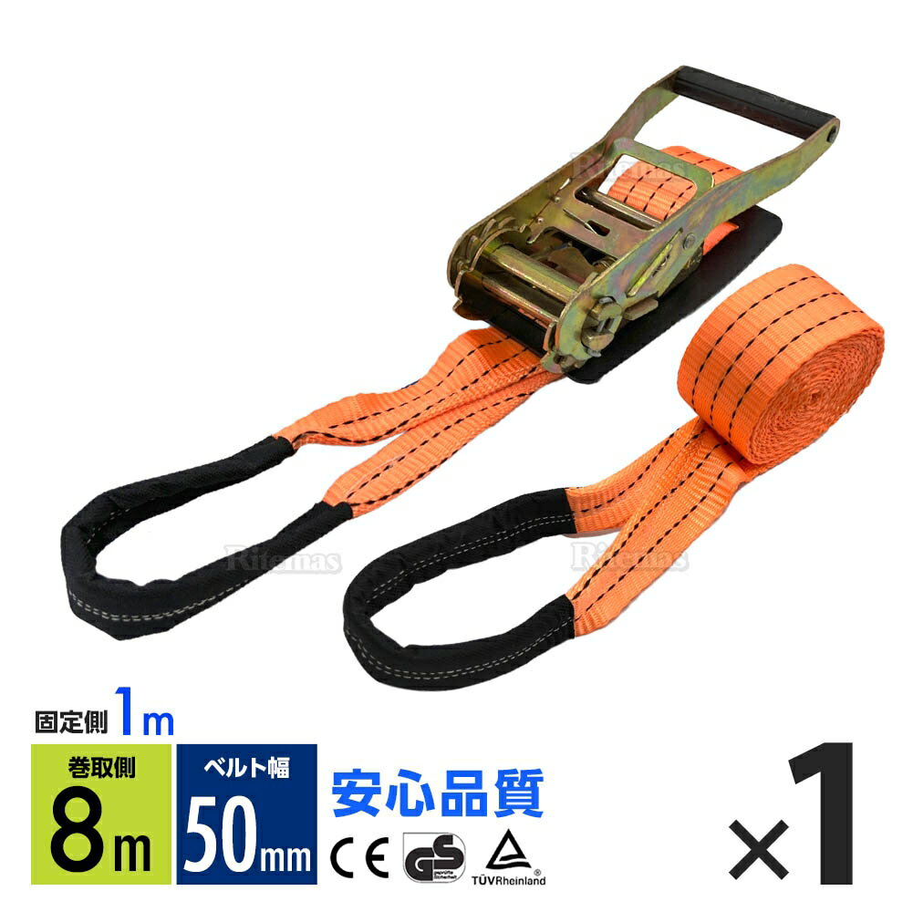 1セット ラッシングベルト ワッカ 幅50mm 固定側1m 巻側8m ラチェット式荷締機 高品質 運搬ベルト ラッシング 荷締め 荷締めベルト 固定 荷崩れ防止 トラック輸送 陸運 海運 パレット搬送 固定 締め付け ガチャ 作業効率 引っ越し