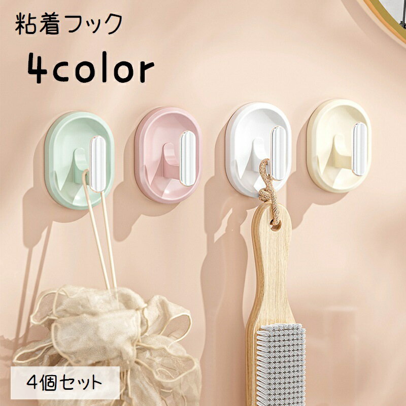 送料無料 粘着フック 同色4個セット ウォールフック 壁付け 多用途 粘着テープ 収納グッズ 整理整頓 日用品雑貨 ケーブルホルダー 壁用 キッチン インテリア雑貨 寝室 玄関 浴室 洗面所 かわいい カジュアル シンプル おしゃれ 白 ピンク 緑 黄