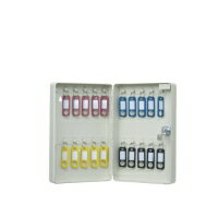 コンパクトながら、収納力も備わったキーボックス。仕切り版が付いており、仕切版にもキーを収納する仕様です。・キーボックス・鍵吊個数:38個・外寸:幅170×奥80×高250mm・質量:1.5kg・材質:本体=スチール、キーホルダー=PP・付属品:本体開錠用キー(2個)、取付用ネジ(3本)、コンクリート用プラグ(3個)、キーホルダー38個(赤12個、青・黄各8個、黒10個)・壁掛け用穴付(3ヶ所)