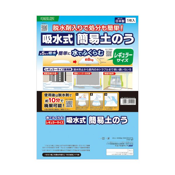 ■商品内容【防災用品について】・防災・非常用の商品につきまして、需要期や非常時には、納期が4週間以上かかる場合があります。地震や災害の影響で更にお時間頂く可能性がございます。・こちらの商品はキャンセル・返品不可とさせていただいております。予めご了承いただきご購入いただきますようお願いいたします。土砂不要、出入口やシャッター周りの浸水対策に!●吸水式簡易土のうのレギュラーサイズ、10個入です。●脱水剤入りで使用後の処分も簡単!●薄くて軽いので保管も省スペースで。●家庭玄関の外側、倉庫シャッターの外側、家庭内各所に!●脱水剤1袋付。■商品スペック種類:土のう寸法:W約550×D300×H100mm重量:約8kg材質:不織布(PP)、高吸水性樹脂(SAP)、脱水剤(塩化カルシウム)その他仕様:●レギュラーサイズ備考:※重量は吸水後の重量です。■送料・配送についての注意事項●本商品の出荷目安は【10 - 16営業日 ※土日・祝除く】となります。●お取り寄せ商品のため、稀にご注文入れ違い等により欠品・遅延となる場合がございます。●本商品は仕入元より配送となるため、沖縄・離島への配送はできません。関連商品【スーパーSALE対象】(まとめ)TRUSCO 土のう袋用ガイドボード...【スーパーSALE対象】TRUSCO 土のう袋48cm×62cm TD...【スーパーSALE対象】(まとめ)TRUSCO 土のう袋48cm×62...28,530円26,080円26,910円【スーパーSALE対象】(まとめ)TRUSCO 吸水土のう不織布スピー...【スーパーSALE対象】西文舘簡易吸水土のう マジックバック MR-1...【スーパーSALE対象】キタリア吸水式簡易土のう ワイドサイズ KPD...27,410円24,800円42,940円【スーパーSALE対象】防災人 水たまり吸水シート BLOCK 20(...【スーパーSALE対象】萩原工業 OD土のうODD4862200 1パ...【スーパーSALE対象】萩原工業 スーパー土のうSPD4862200 ...20,310円45,310円24,350円