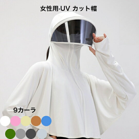 女性用UVカットジャケット レンズ付き帽子 UPF50+ 5color 紫外線対策 つば広 小顔効果 あご紐付き 通気 日よけ 携帯便利 サイズ調節 折りたたみ 美しいシルエット