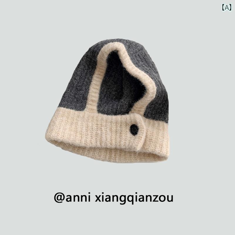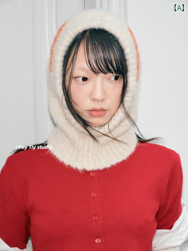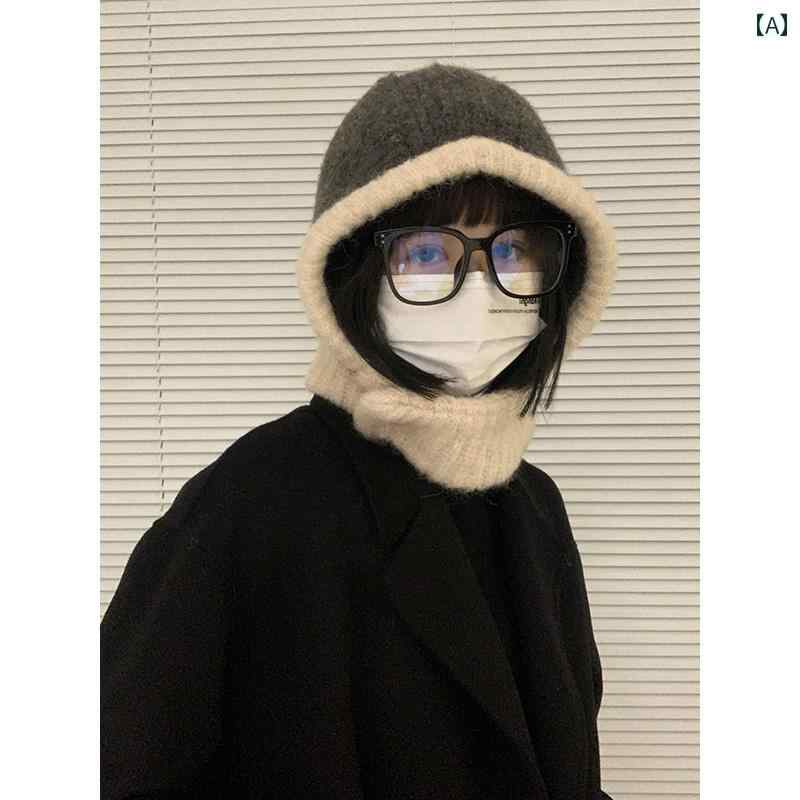バラクラバ おしゃれ 帽子 女子 対照的な 色の かわいい 小さい 暖かい 帽子 顔と スカーフが 統合 目出し帽 秋冬 耳 保護 ヘッド ギア 雷 峰