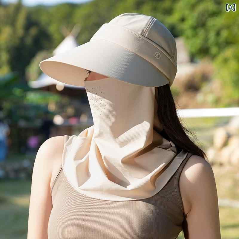 目出し帽子 日焼け防止 レディース 女性用 ゴルフ 帽子 韓国製 日焼け防止 スポーツ つば 広 サンシェード ネック マスク トップレス 紫外線 防止