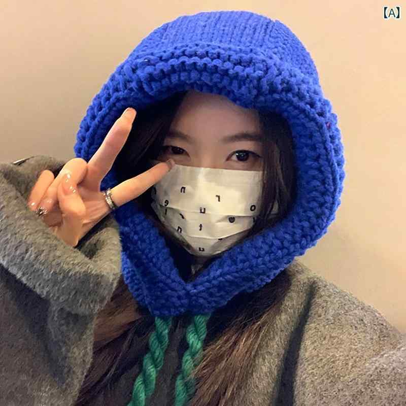バラクラバ おしゃれ 帽子 女子 韓国 秋冬 目出し帽 厚手 暖かい ウール 帽子 ネック スカーフ 統合 耳 保護 ニット レディース